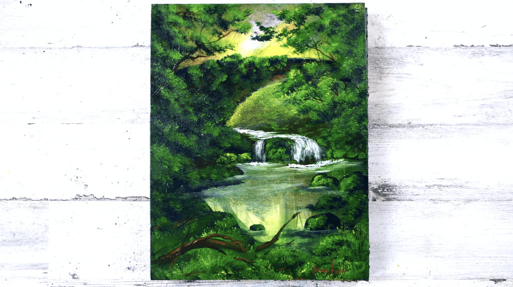 #NatureInspireArt, #BeautifulWaterfalls, #OvergrownBridge, #LandscapePaintingTips, #ArtSuppliesOnline, #StepByStepPainting, #AcrylicLandscapeArt, #OriginalArtwork