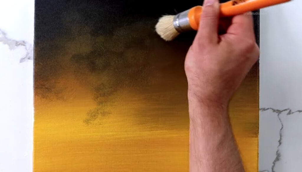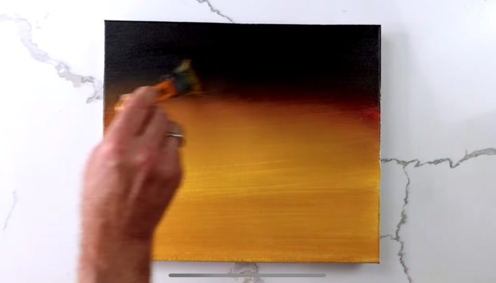 - Next, switch to the big oval brush. With confident strokes, blend the colors from dark to light, seamlessly transitioning the hues top to bottom, creating a gradient backdrop.