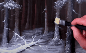 Frozen Contrast | How to Paint Dark Brown Pine Forest | Fallen Tree Covered in White Snow | Acrylics VIDEO GUIDE 65