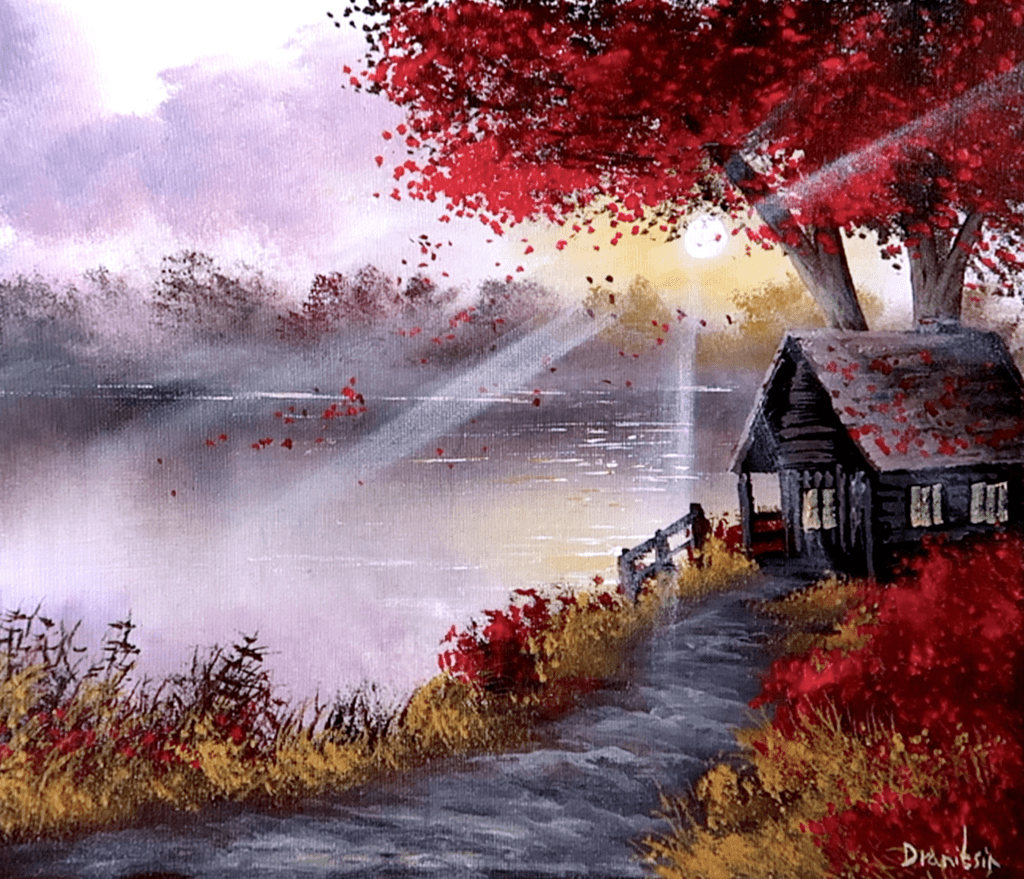 #lakepainting, #cabinart, #acrylictutorial, #beginnersart, #landscapepainting, #artdemonstration, #sunrisepainting, #natureart