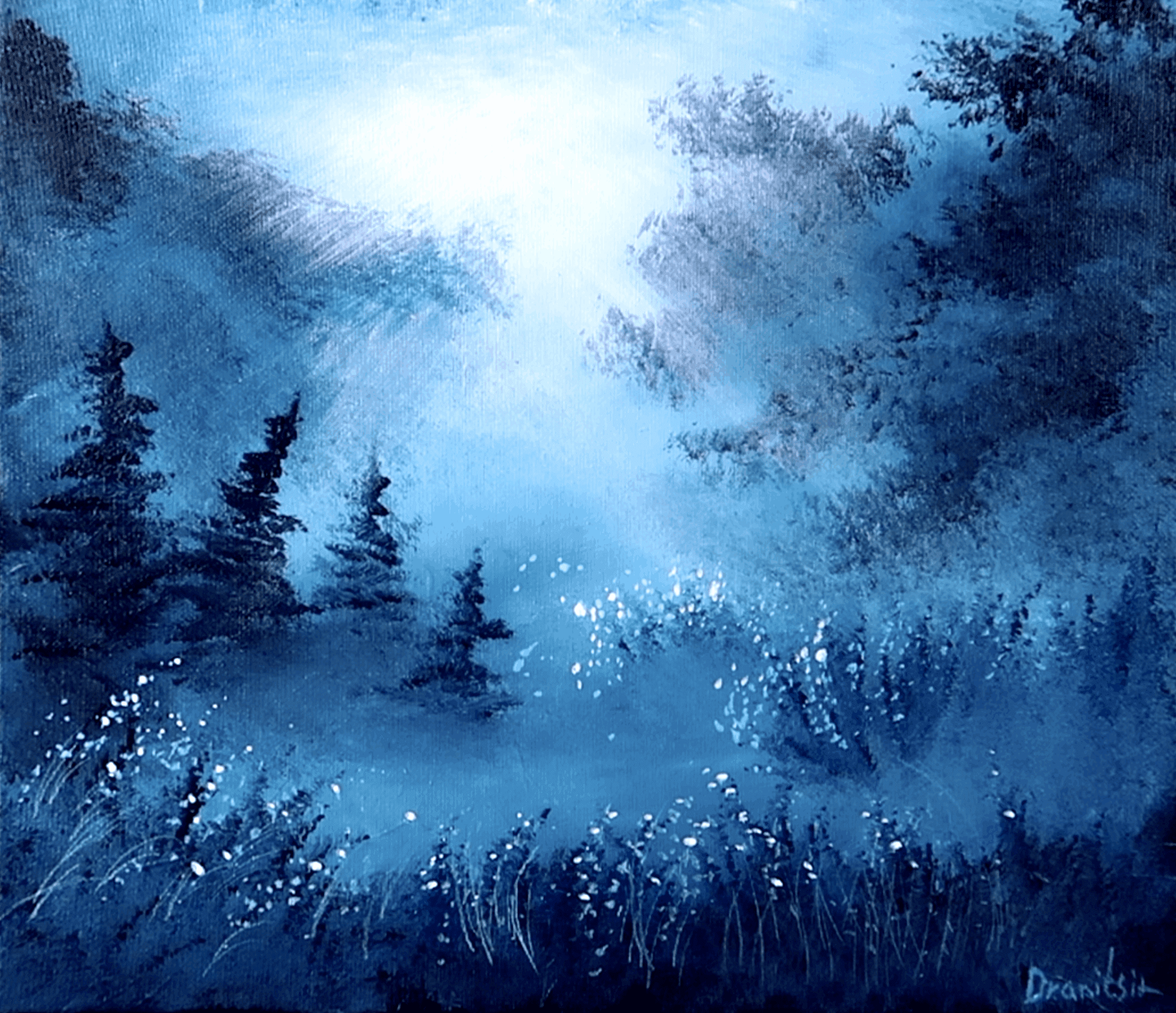 #nightforest, #landscapepainting, #acrylicpainting, #paintingtutorial, #artforbeginners, #stepbysteppainting, #blueart, #easyartdemo
