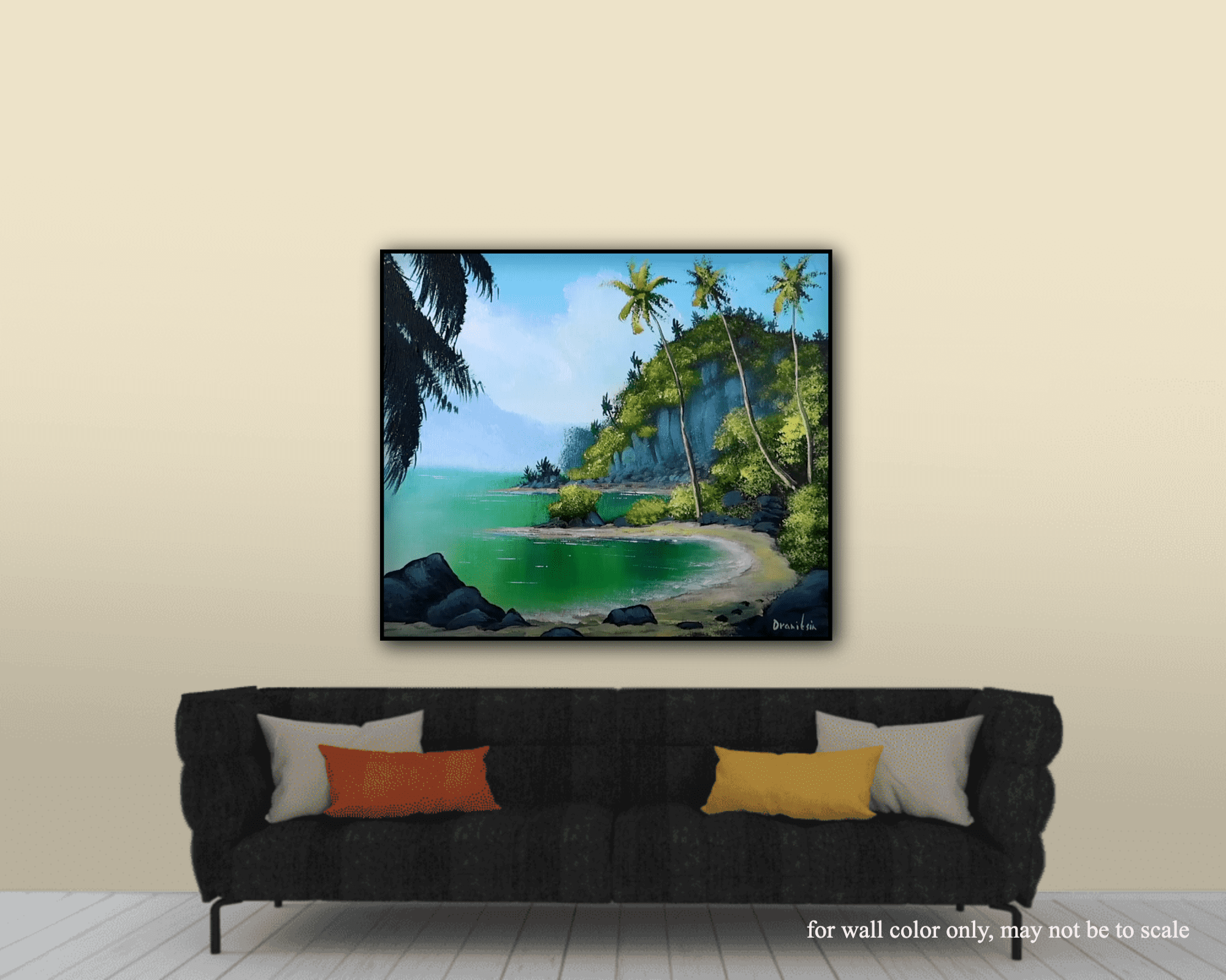 (Translation: Beautiful painting, paradise-like, total escape!)