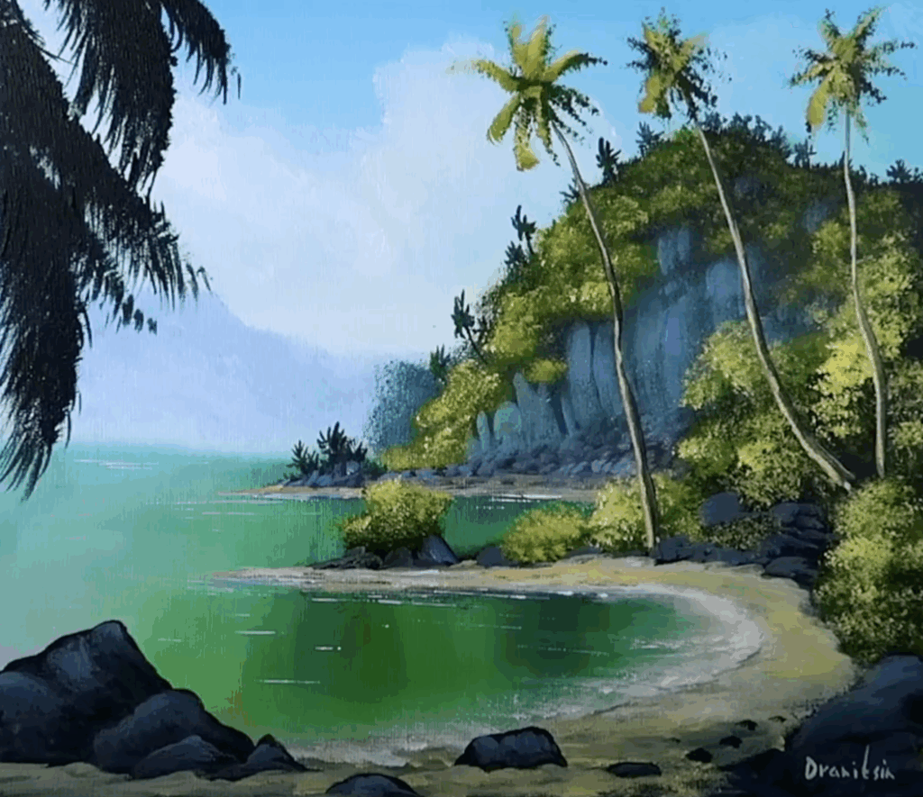#landscapepainting, #paintingdemo, #acrylicpainting, #artforbeginners, #stepbystepart, #tropicalart, #islandpainting, #easyarttutorial