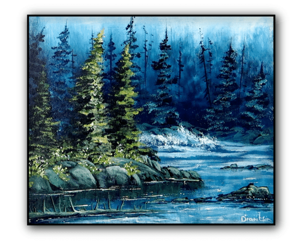 Immerse yourself in the peaceful beauty of nature with our original acrylic painting, “Forest by the Lake.” This captivating landscape invites you into a quiet woodland scene where tall, graceful trees stand watch over a calm, reflective lake. Soft greens, earthy browns, and gentle blue hues create a soothing atmosphere, making you feel as though you’re standing at the water’s edge, breathing in the fresh forest air.