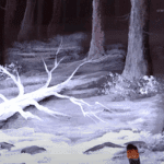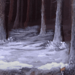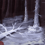 Utilizing unconventional paintbrushes, this artwork showcases meticulous details and a compelling texture that invites viewers to explore its depths. The contrasting colors—a crisp, bright white that lights up the canvas and the deep, earthy tones of the forest—evoke a sense of tranquility and contemplation, drawing you into a quiet winter moment that feels both expansive and intimate.