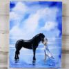 The choice of an 12×14″ canvas is significant. It provides ample space for the artist to depict the intricate details of the girl’s and the horse’s expressions, while also allowing for a sense of intimacy. The canvas serves as a visual stage where this heartwarming story comes to life.