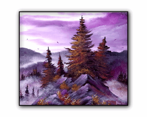 Immerse yourself in the enchanting beauty of nature with our stunning original acrylic painting, “Mountain Ridge Under Lavender Sky.” This captivating artwork showcases majestic mountain peaks silhouetted against a dreamy lavender-hued sky, blending soft purples, deep blues, and earthy tones. The serene composition invites a sense of peace and wonder, transporting you to a quiet, untouched wilderness at twilight.