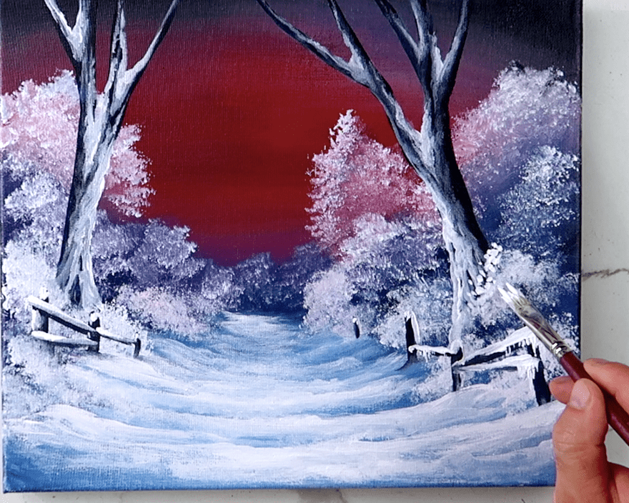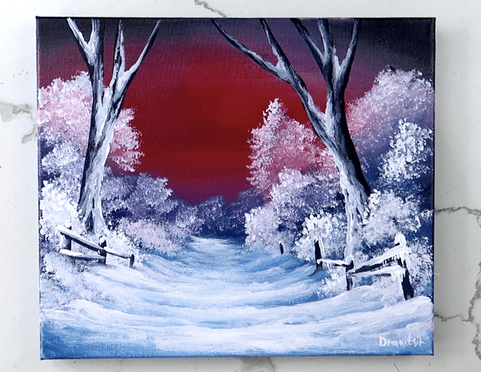 #winterpainting, #landscapepainting, #acrylicpainting, #snowypath, #artforbeginners, #stepbystepart, #redskyart, #easyarttutorial