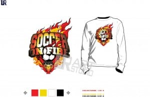 DOWNLOAD “Soccer on Fire” tournament tshirt, vector design with nice background color separated ready for screen print